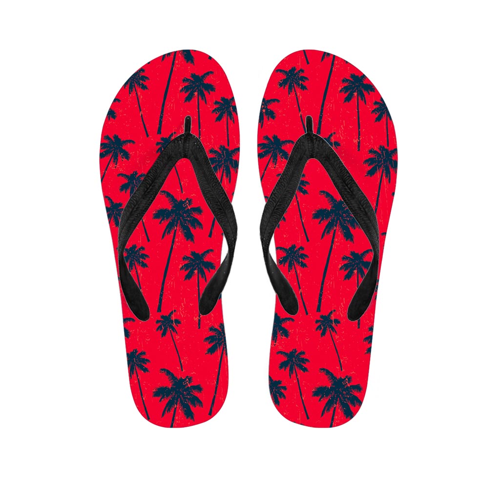 Black Red Palm Tree Pattern Print Flip Flops For Men Women