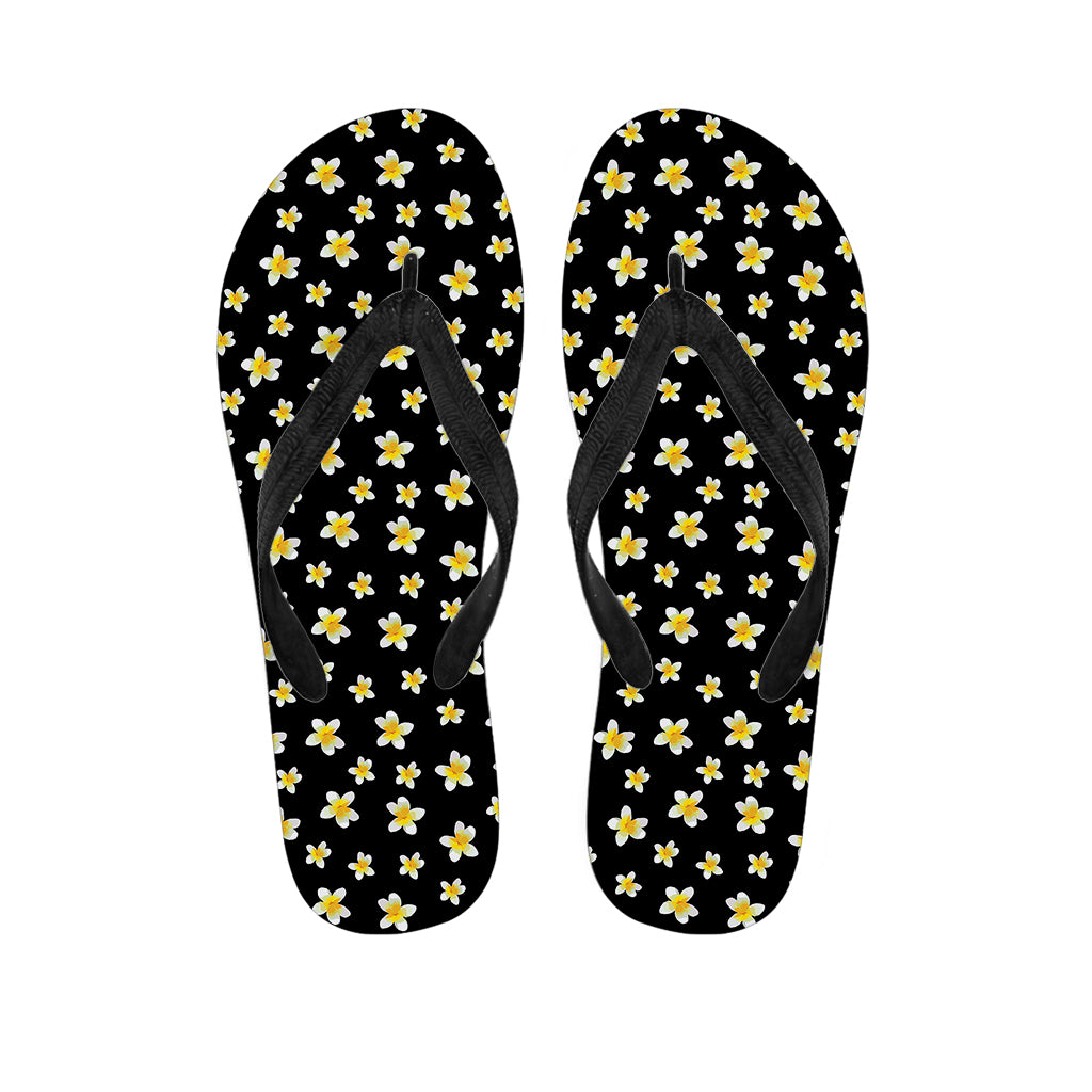 Black Plumeria Flower Pattern Print Flip Flops For Men Women