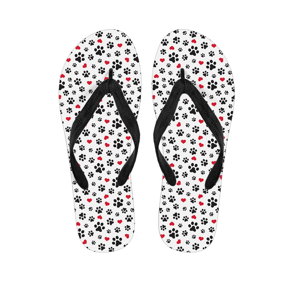 Black Paw And Heart Pattern Print Flip Flops For Men Women
