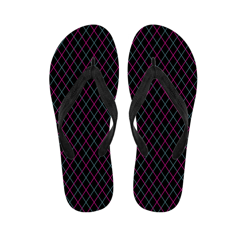 Black Pink And Blue Argyle Pattern Print Flip Flops For Men Women