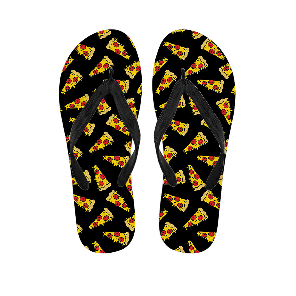 Black Pizza Pattern Print Flip Flops For Men Women