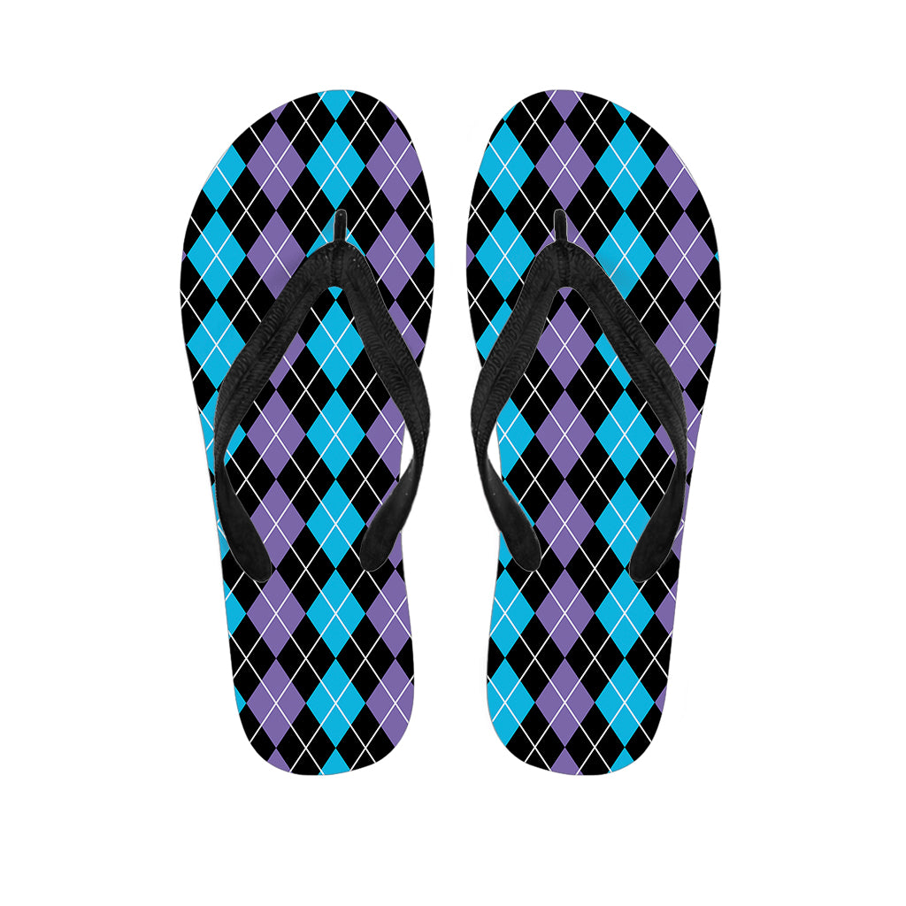 Black Purple And Blue Argyle Print Flip Flops For Men Women