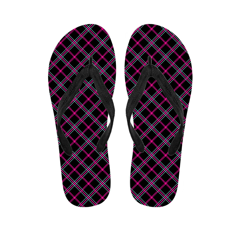 Black Pink And Blue Tartan Pattern Print Flip Flops For Men Women