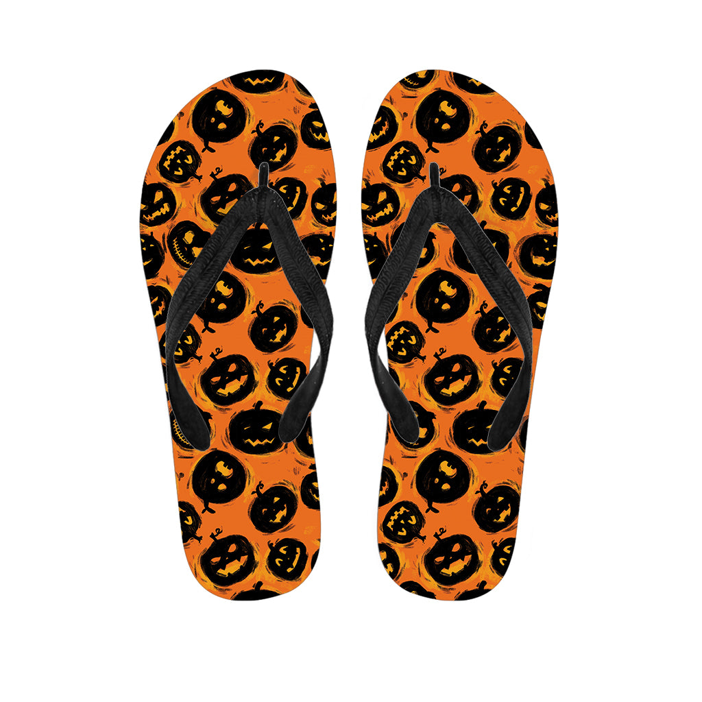 Black Pumpkin Pattern Print Flip Flops For Men Women