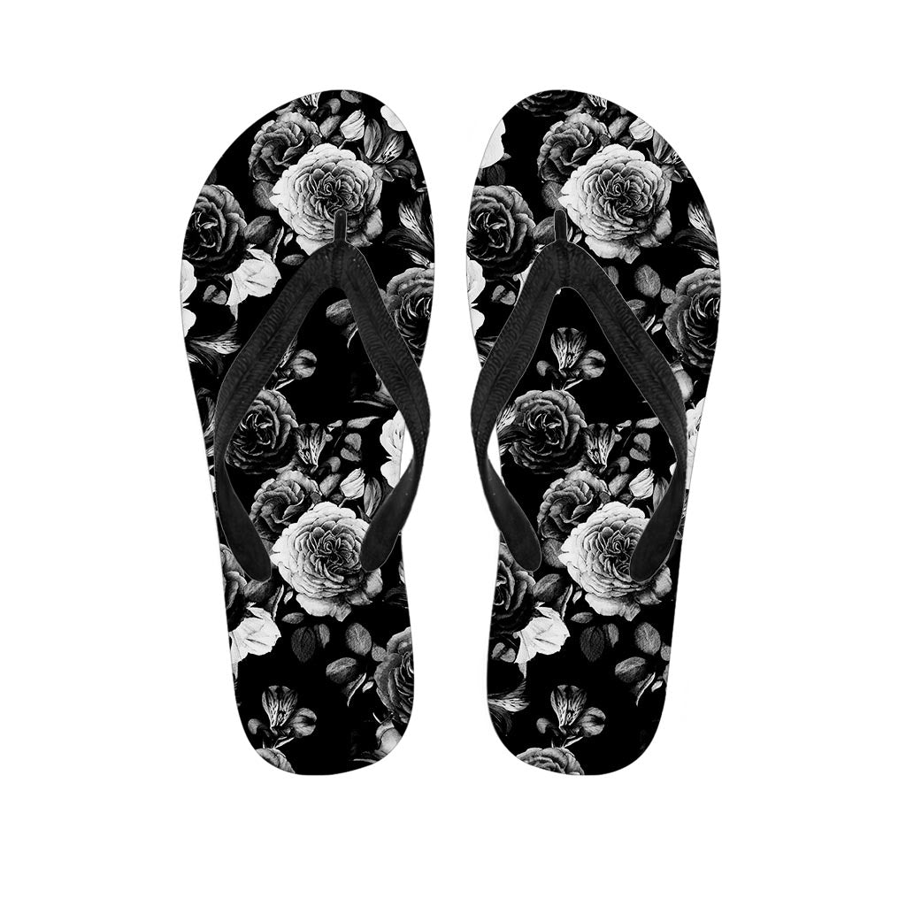 Black White Rose Floral Pattern Print Flip Flops For Men Women