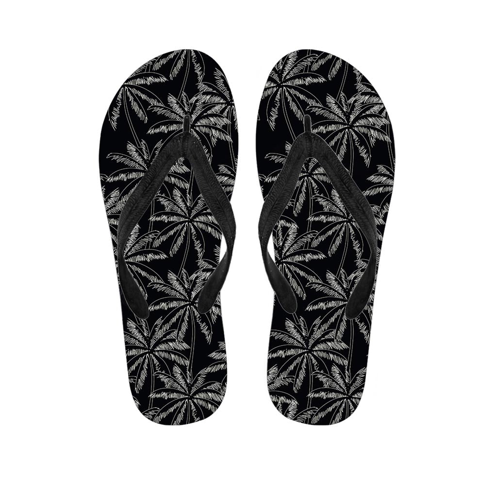 Black White Palm Tree Pattern Print Flip Flops For Men Women