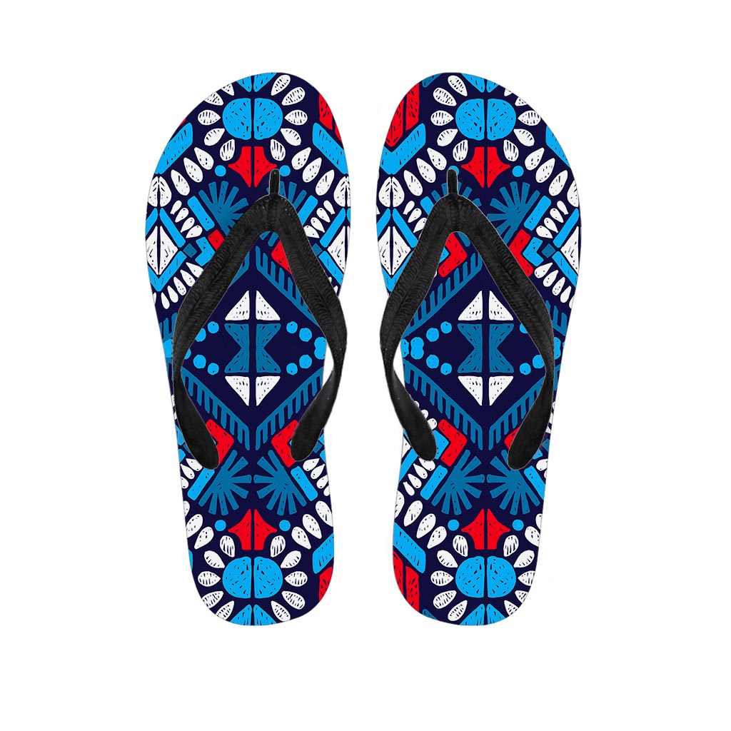 Blue And Red Aztec Pattern Print Flip Flops For Men Women