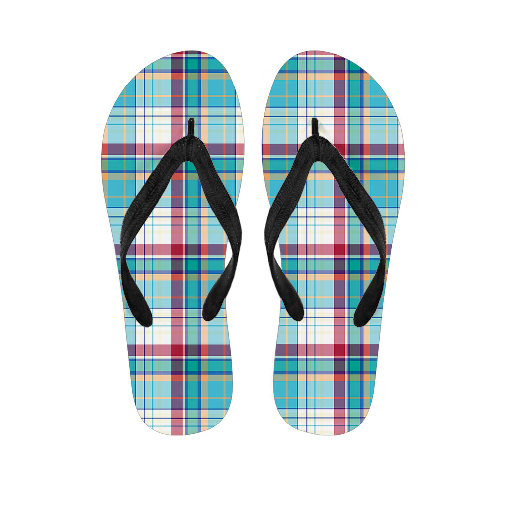 Blue And Red Madras Pattern Print Flip Flops For Men Women