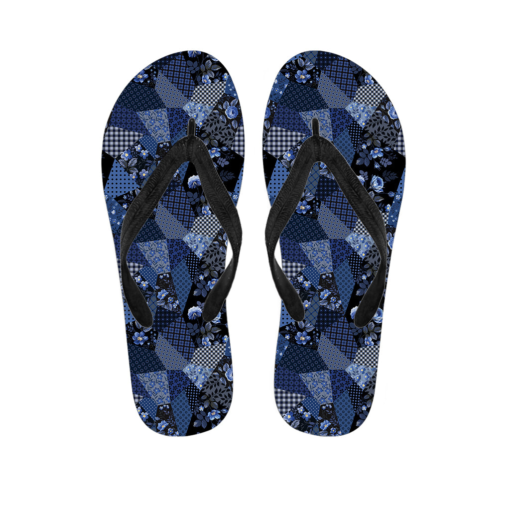 Blue Flower Patchwork Pattern Print Flip Flops For Men Women