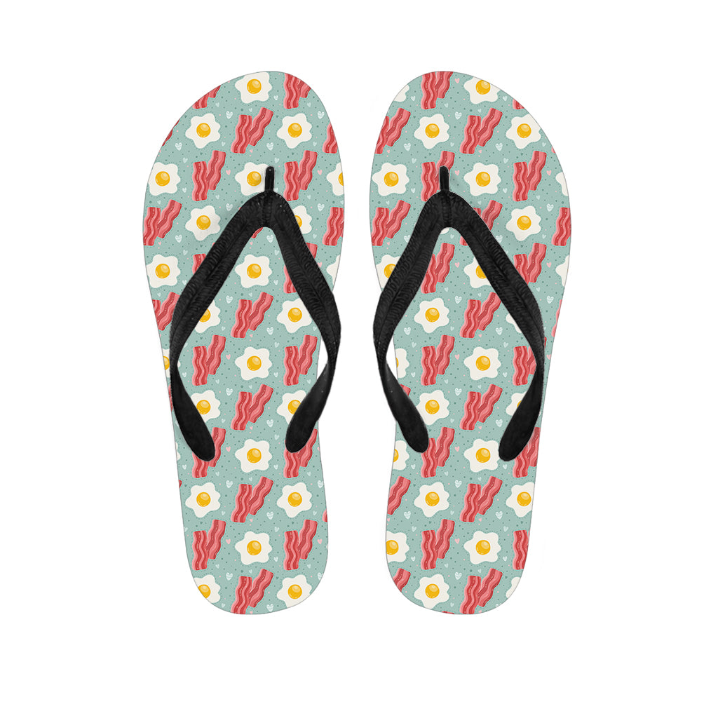 Blue Fried Egg And Bacon Pattern Print Flip Flops For Men Women