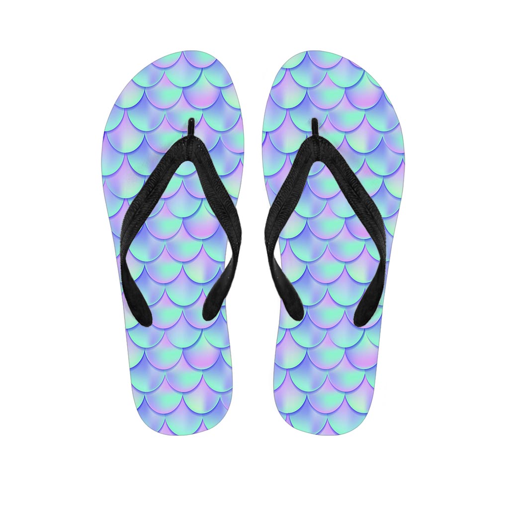 Blue Mermaid Scales Pattern Print Flip Flops For Men Women