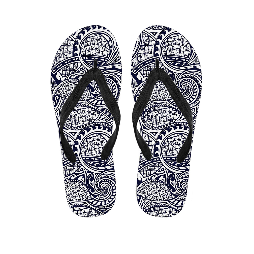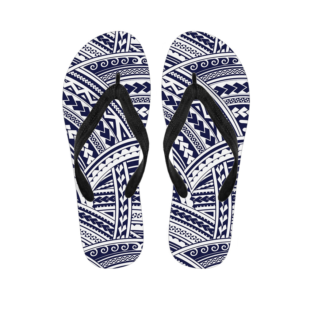 Blue Maori Polynesian Tattoo Print Flip Flops For Men Women