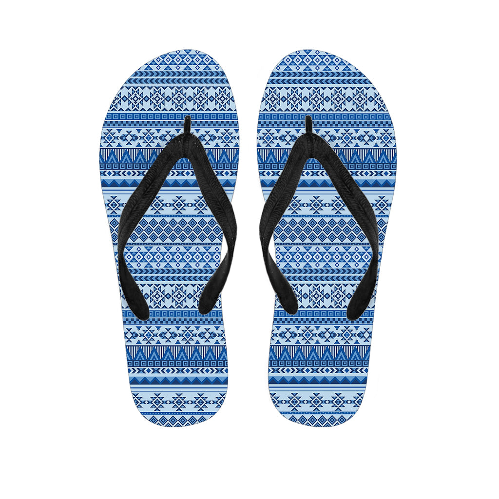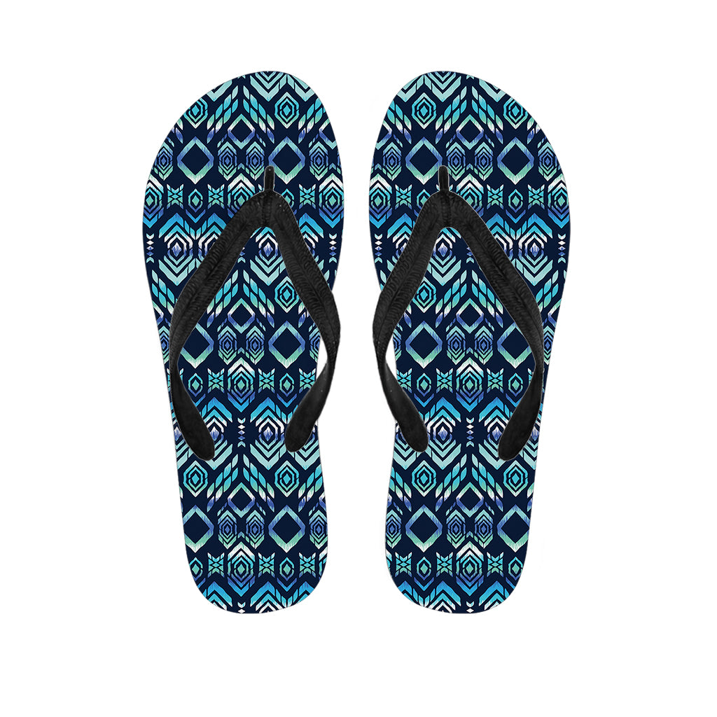 Blue Native Aztec Tribal Pattern Print Flip Flops For Men Women