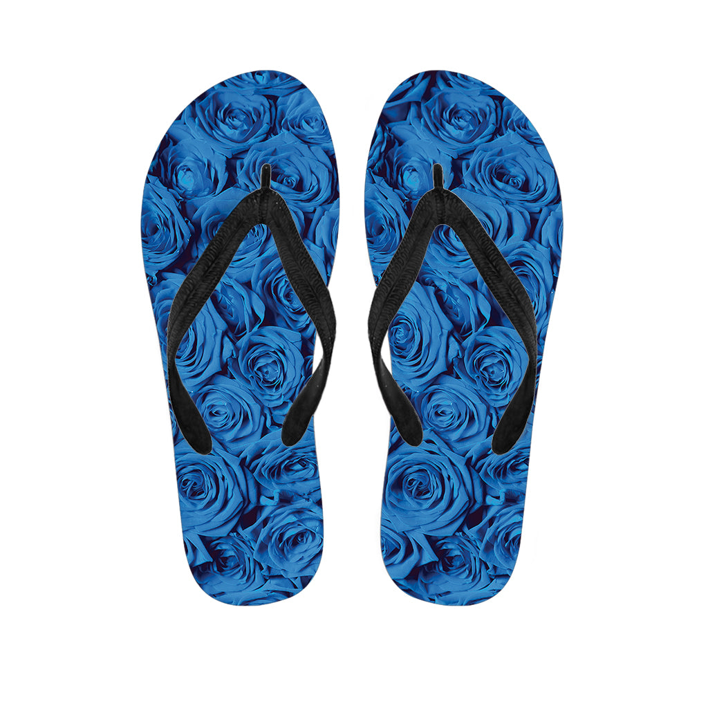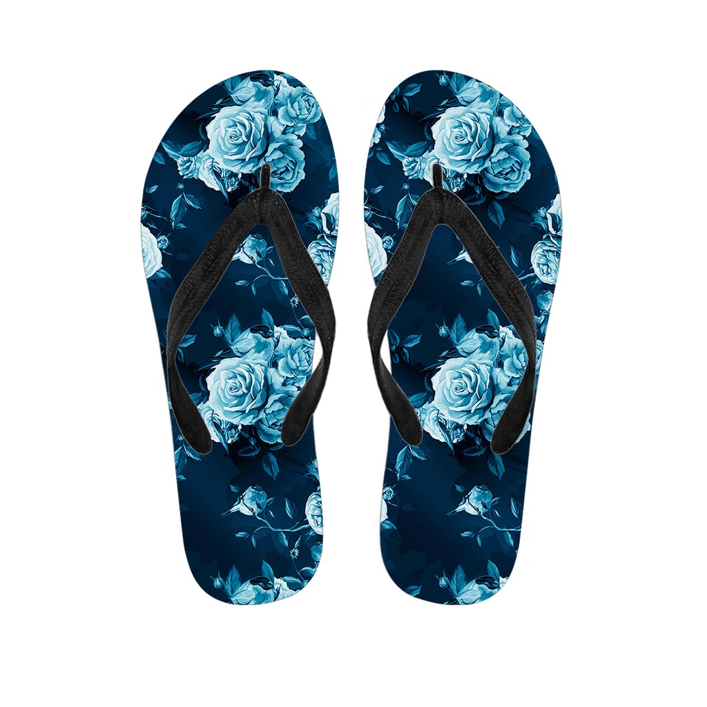 Blue Rose Floral Flower Pattern Print Flip Flops For Men Women