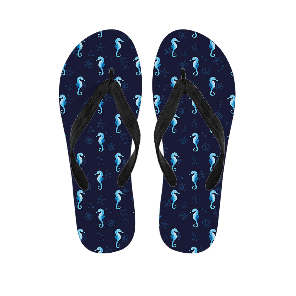 Blue Seahorse Pattern Print Flip Flops For Men Women