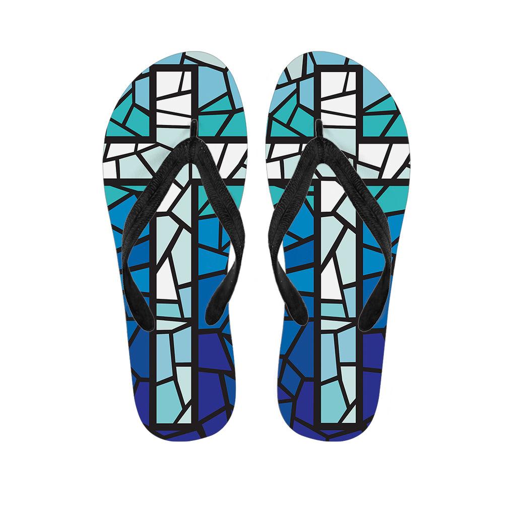 Blue Stained Glass Cross Print Flip Flops For Men Women
