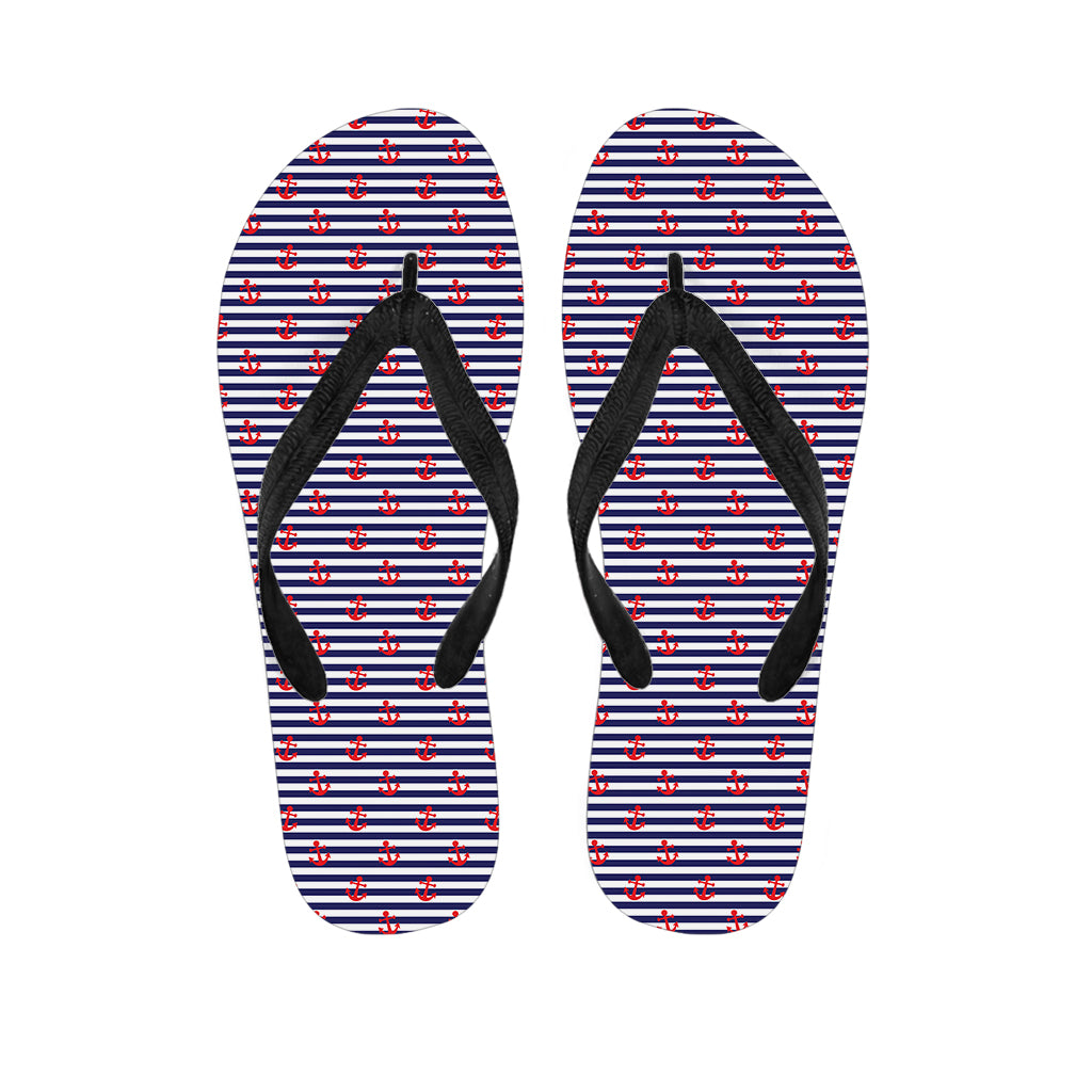 Blue Striped Nautical Anchor Print Flip Flops For Men Women