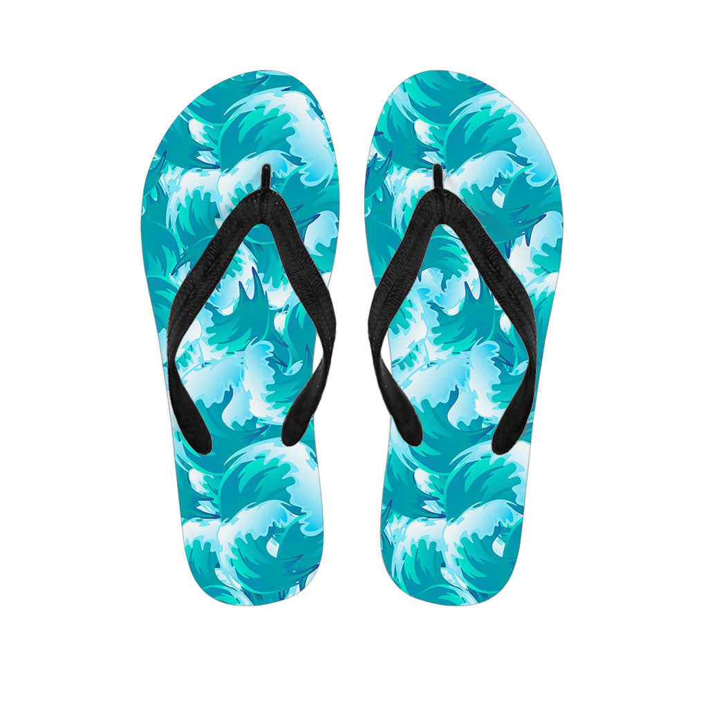 Blue Surfing Wave Pattern Print Flip Flops For Men Women
