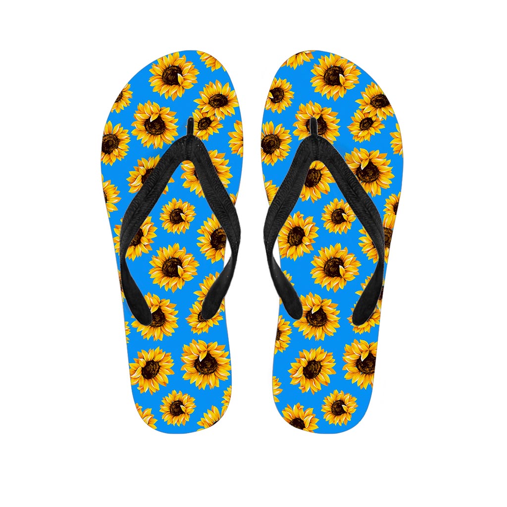 Blue Sunflower Pattern Print Flip Flops For Men Women