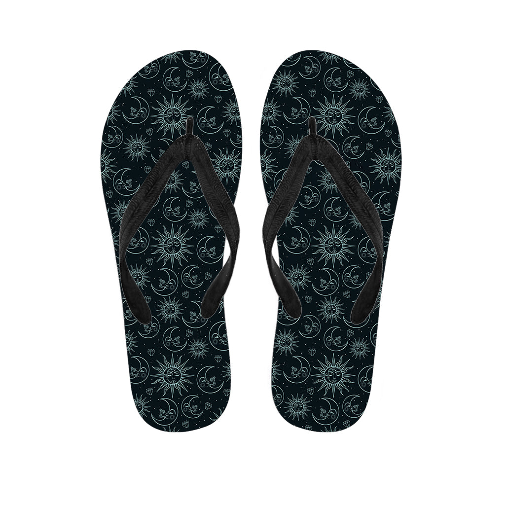 Blue Sun And Moon Pattern Print Flip Flops For Men Women