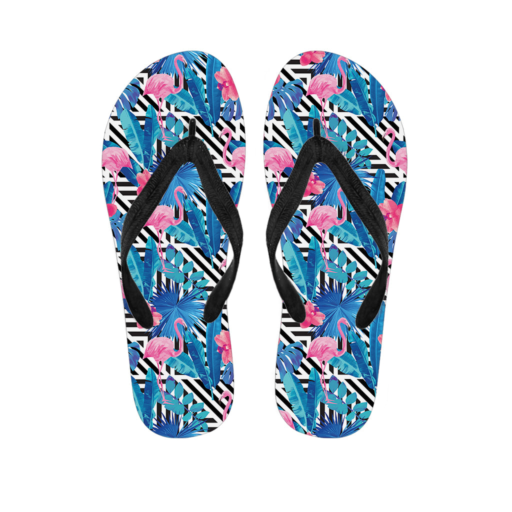 Blue Tropical And Pink Flamingo Print Flip Flops For Men Women