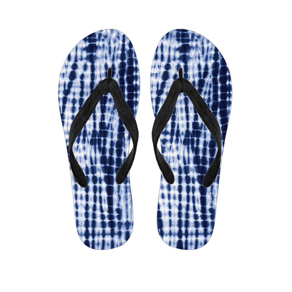 Blue Tie Dye Shibori Print Flip Flops For Men Women