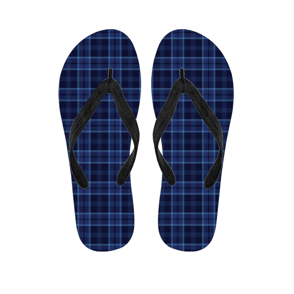 Blue Tartan Pattern Print Flip Flops For Men Women