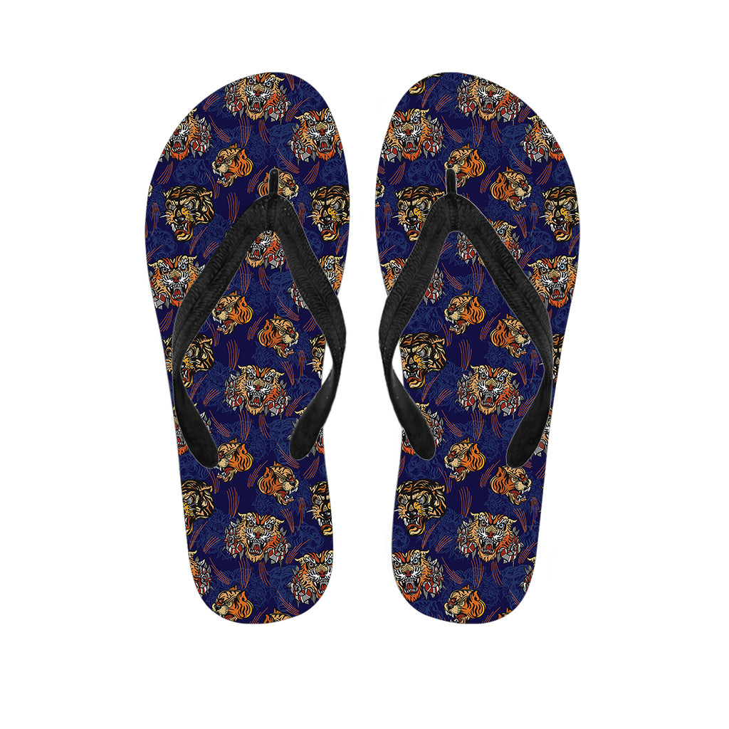 Blue Tiger Tattoo Pattern Print Flip Flops For Men Women