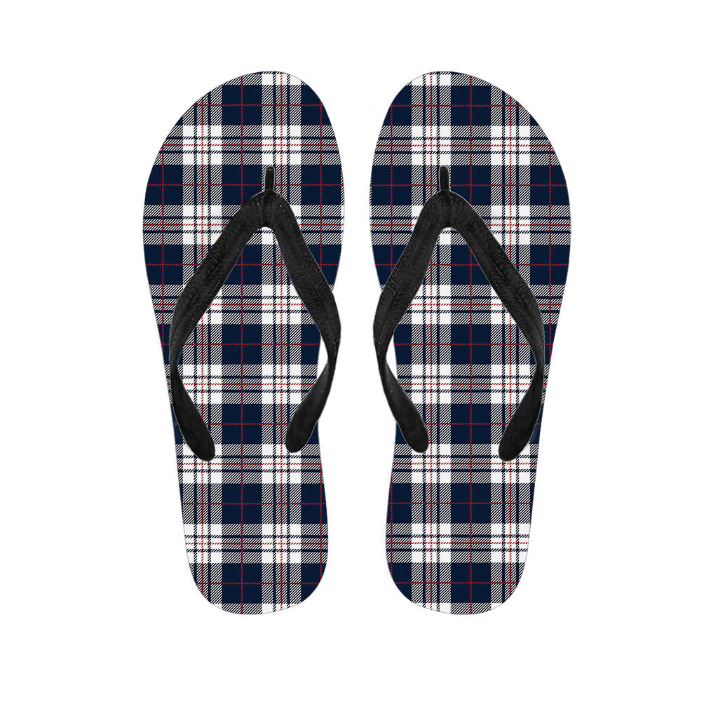 Blue White And Red Tartan Pattern Print Flip Flops For Men Women