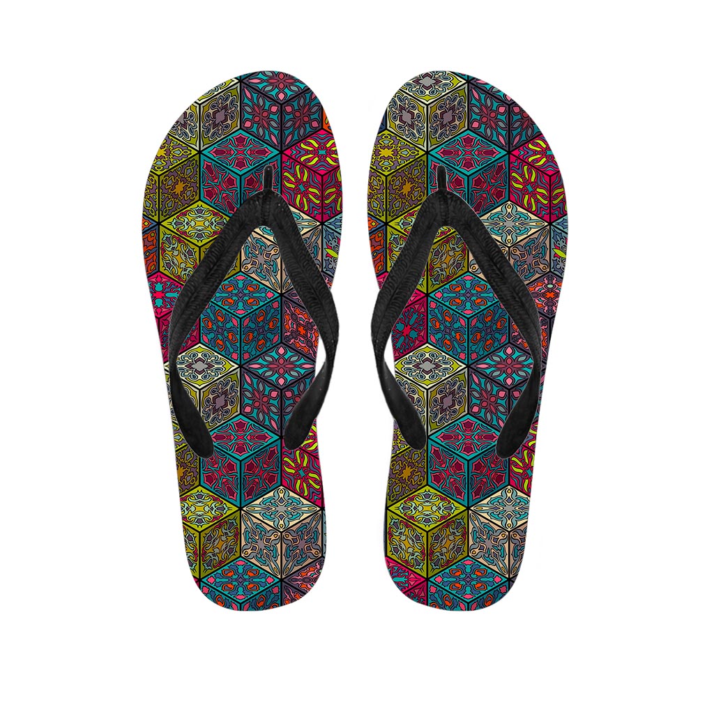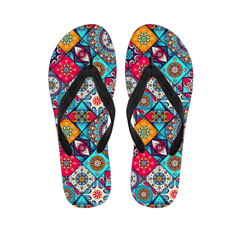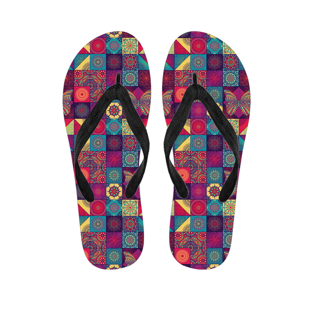 Bohemian Indian Mandala Patchwork Print Flip Flops For Men Women