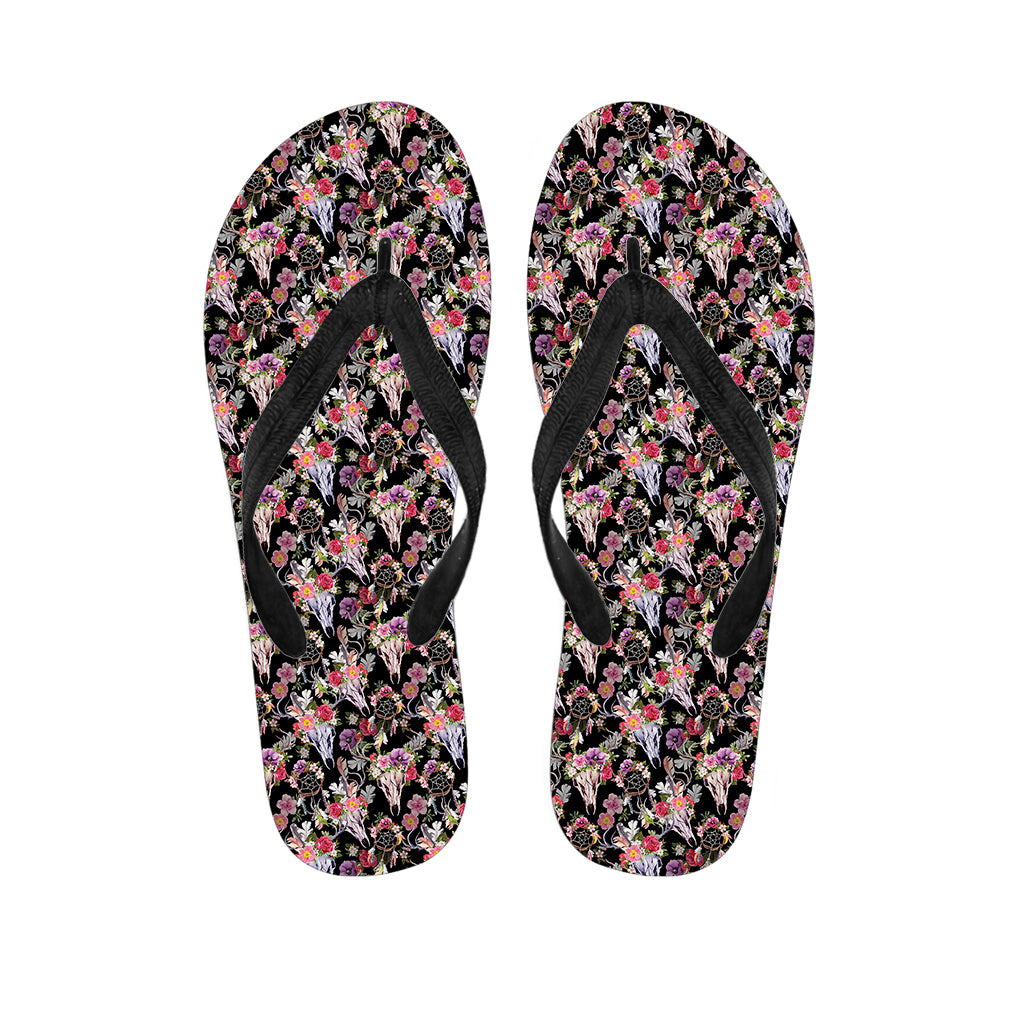 Boho Floral Deer Skull Print Flip Flops For Men Women