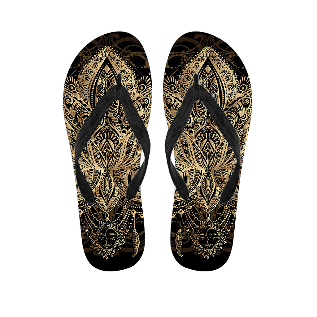 Boho Spiritual Lotus Print Flip Flops For Men Women