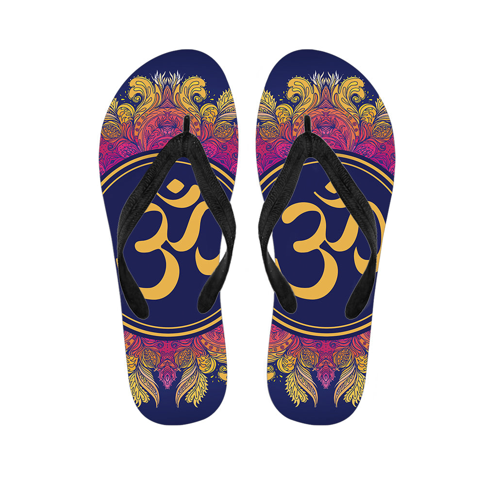Boho Om Sign Pattern Print Flip Flops For Men Women