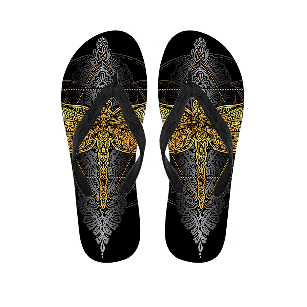 Boho Spiritual Dragonfly Print Flip Flops For Men Women