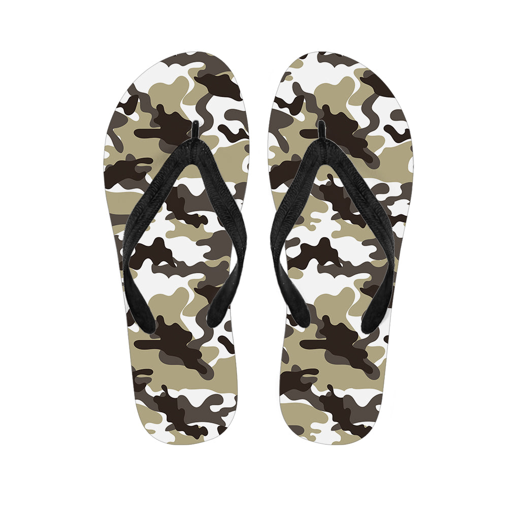 Brown And White Camouflage Print Flip Flops For Men Women