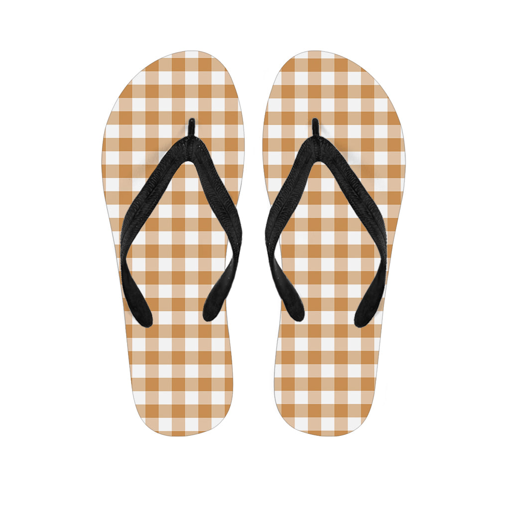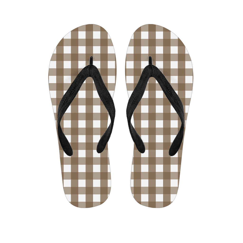Brown And White Gingham Pattern Print Flip Flops For Men Women