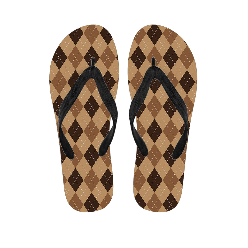 Brown Argyle Pattern Print Flip Flops For Men Women