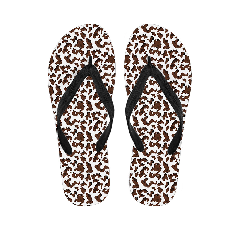 Brown And White Cow Pattern Print Flip Flops For Men Women