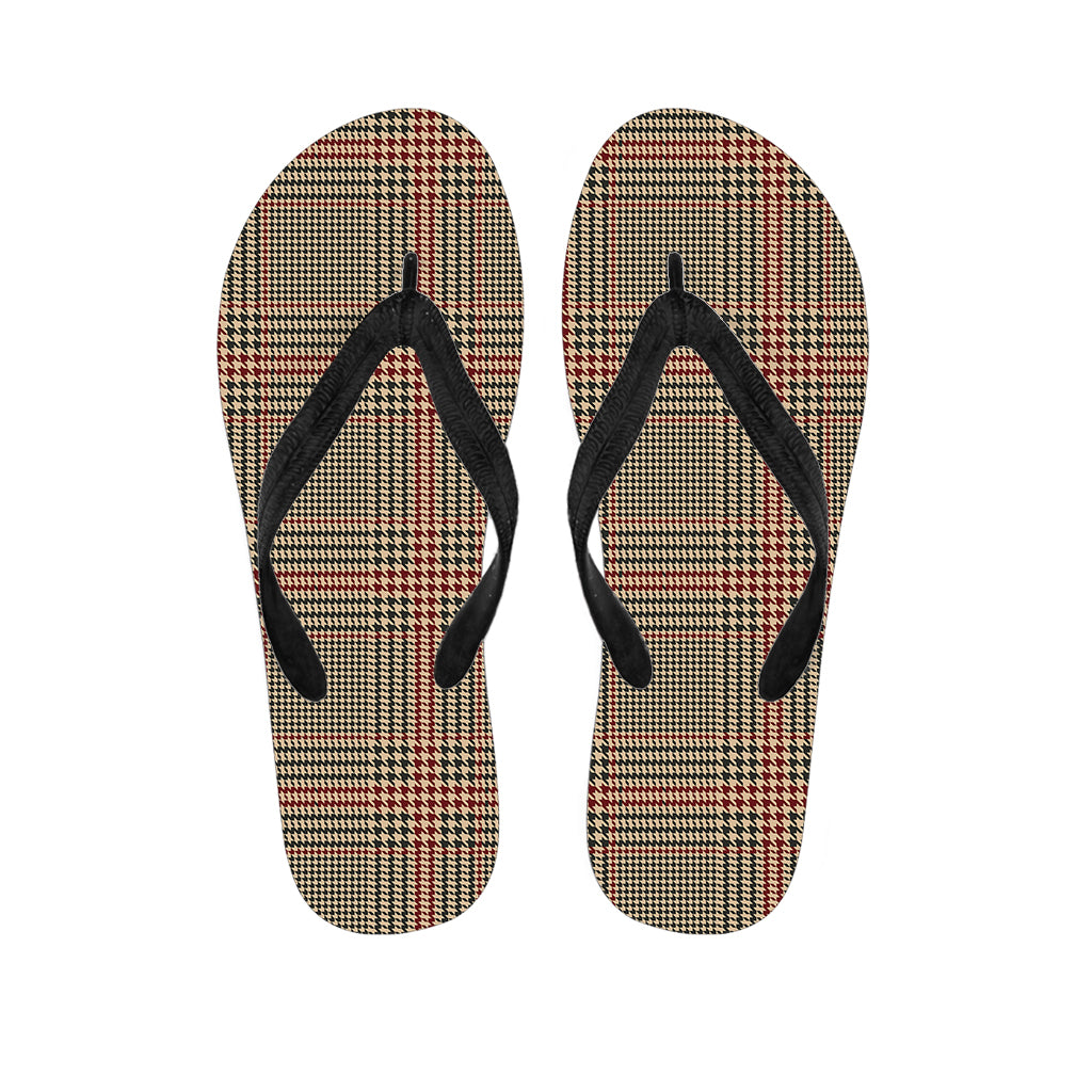 Brown Beige And Red Glen Plaid Print Flip Flops For Men Women