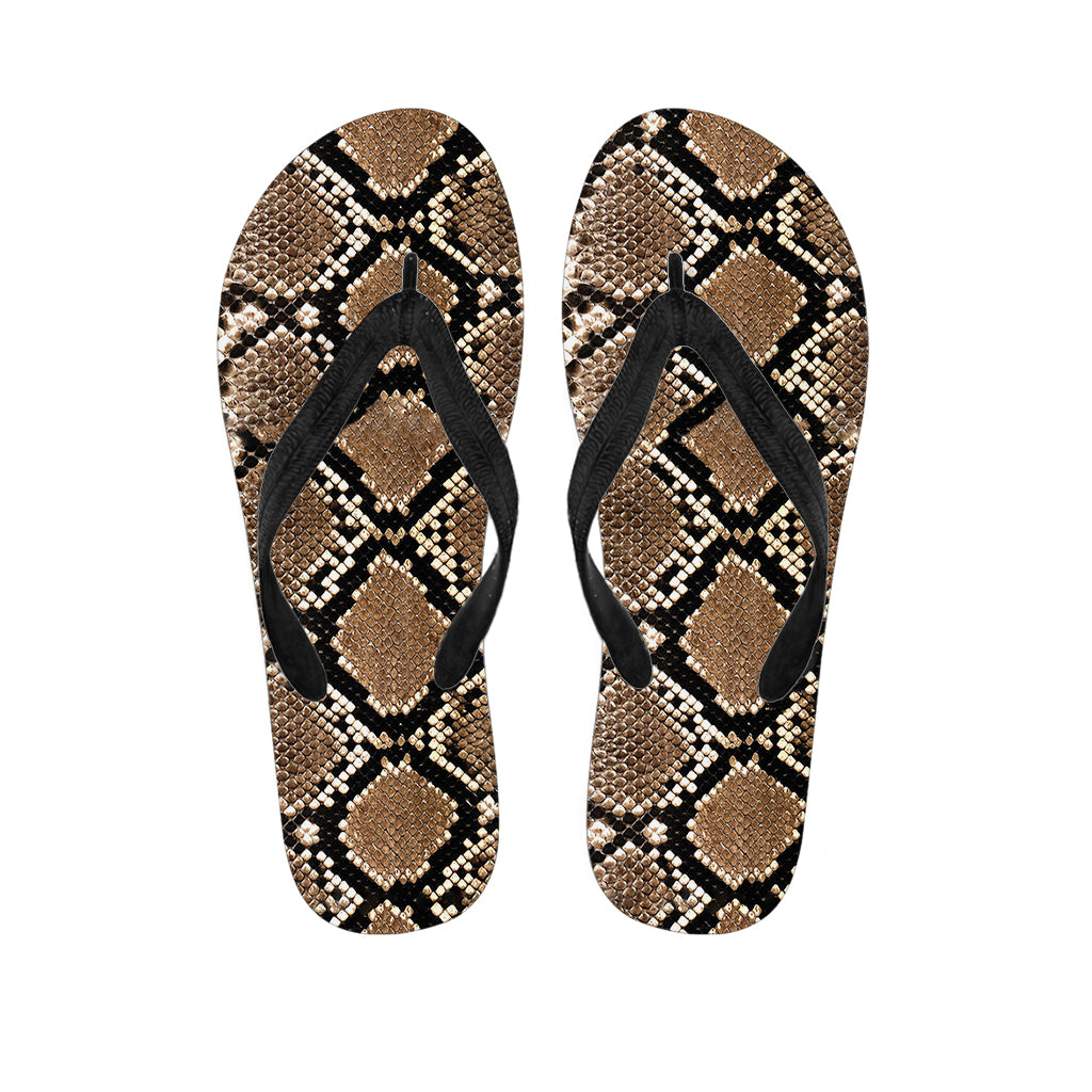 Brown Python Snakeskin Print Flip Flops For Men Women