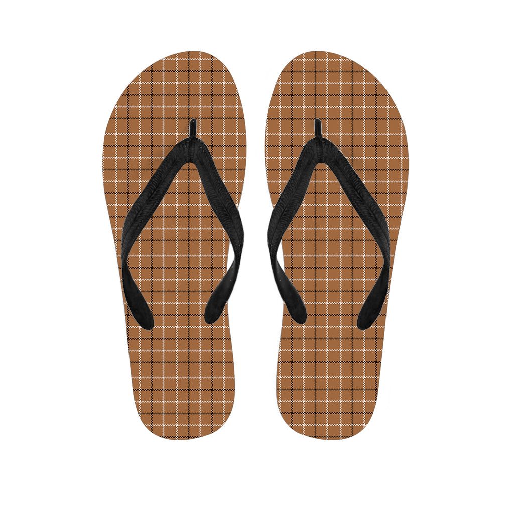 Brown Tattersall Pattern Print Flip Flops For Men Women