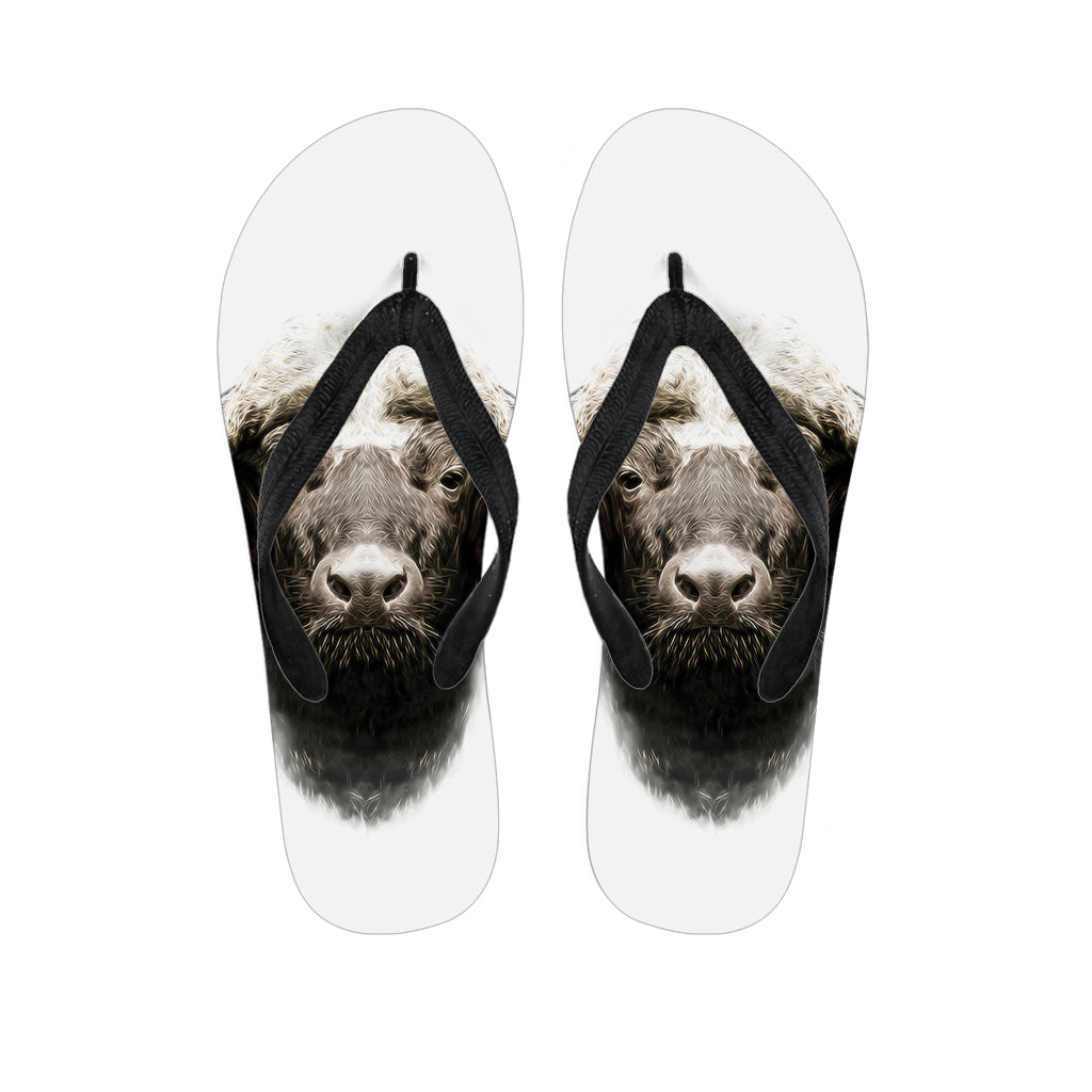 Bull Portrait Print Flip Flops For Men Women