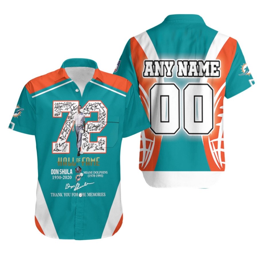 Miami Dolphins Don Shula 72 NFL Hall Of Fame Thank You For The Memories 3D Custom Name Number For Dolphins Fans Hawaiian Shirt
