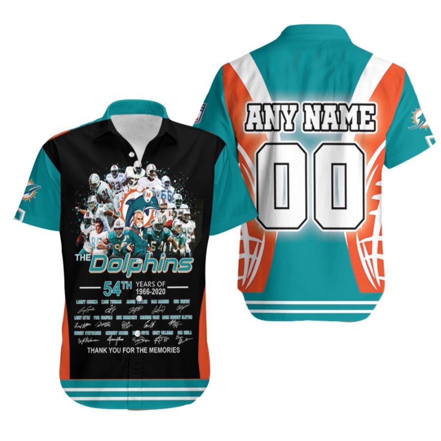 Miami Dolphins The Dolphins 54th Years Of 1966 2020 Thank You For The Memories 3D Custom Name Number For Dolphins Fans Hawaiian Shirt