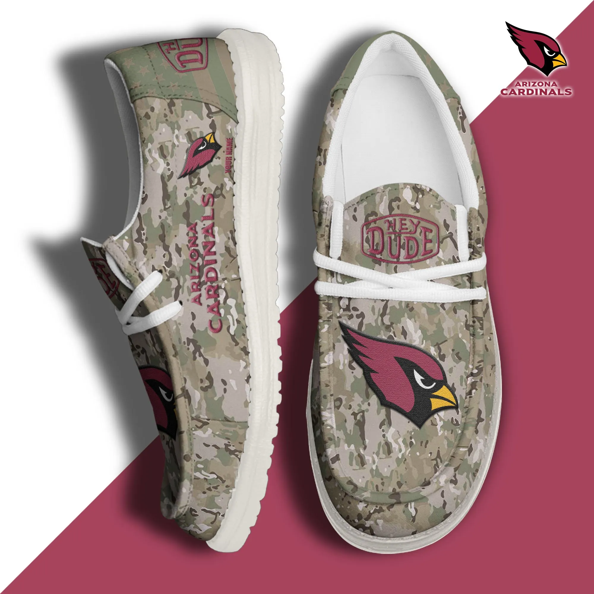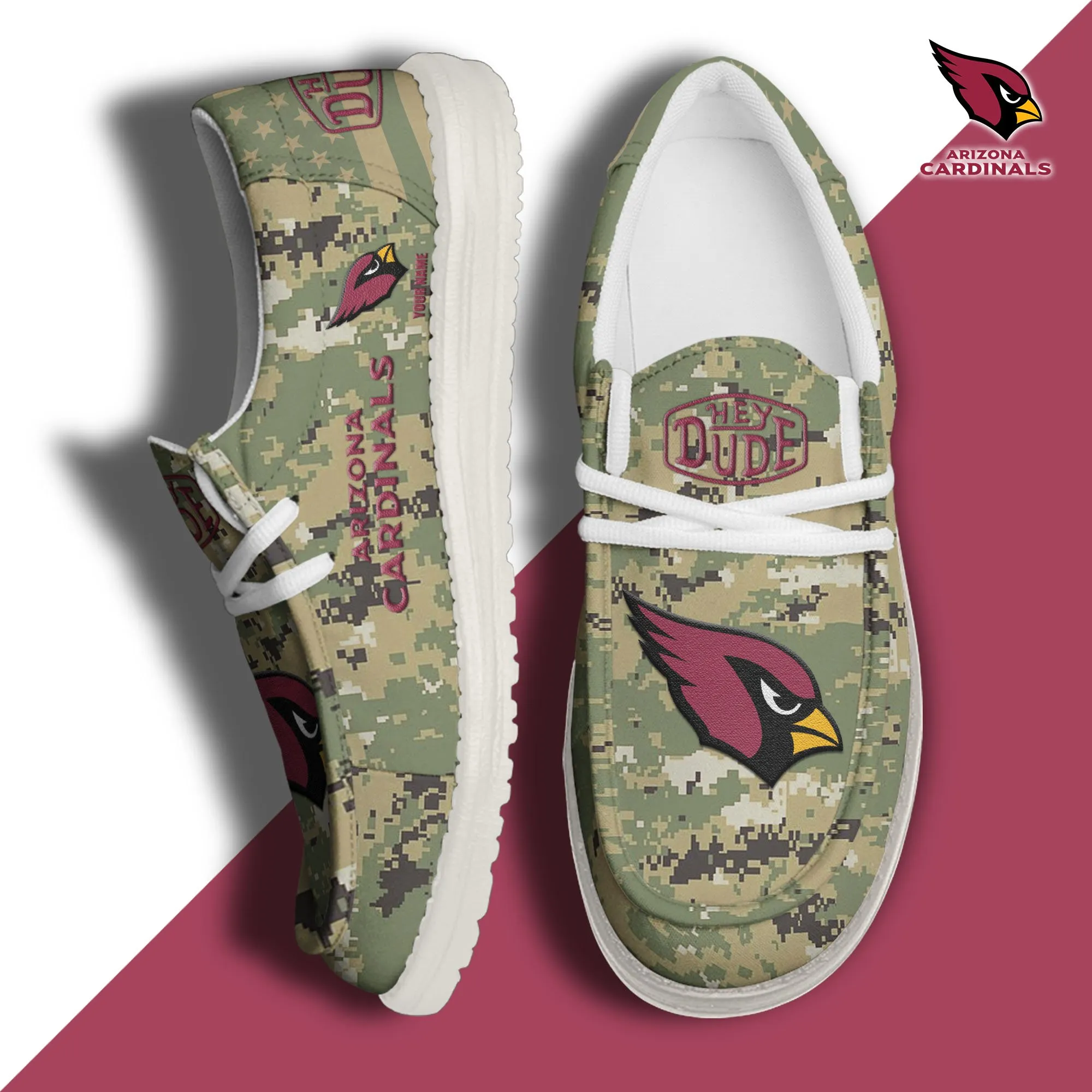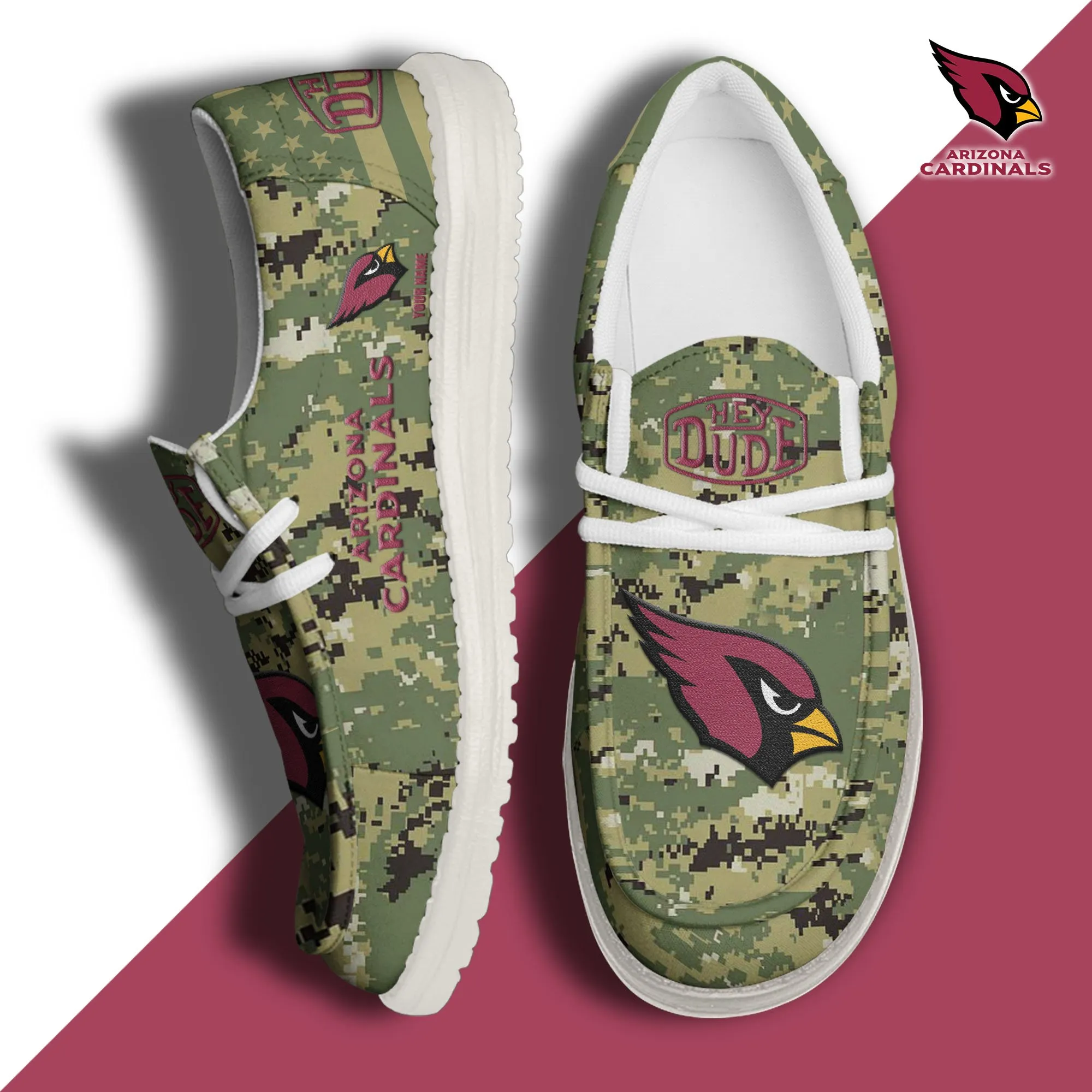 Arizona Cardinals 3D Print Dude Shoes Camo Green For Men Women