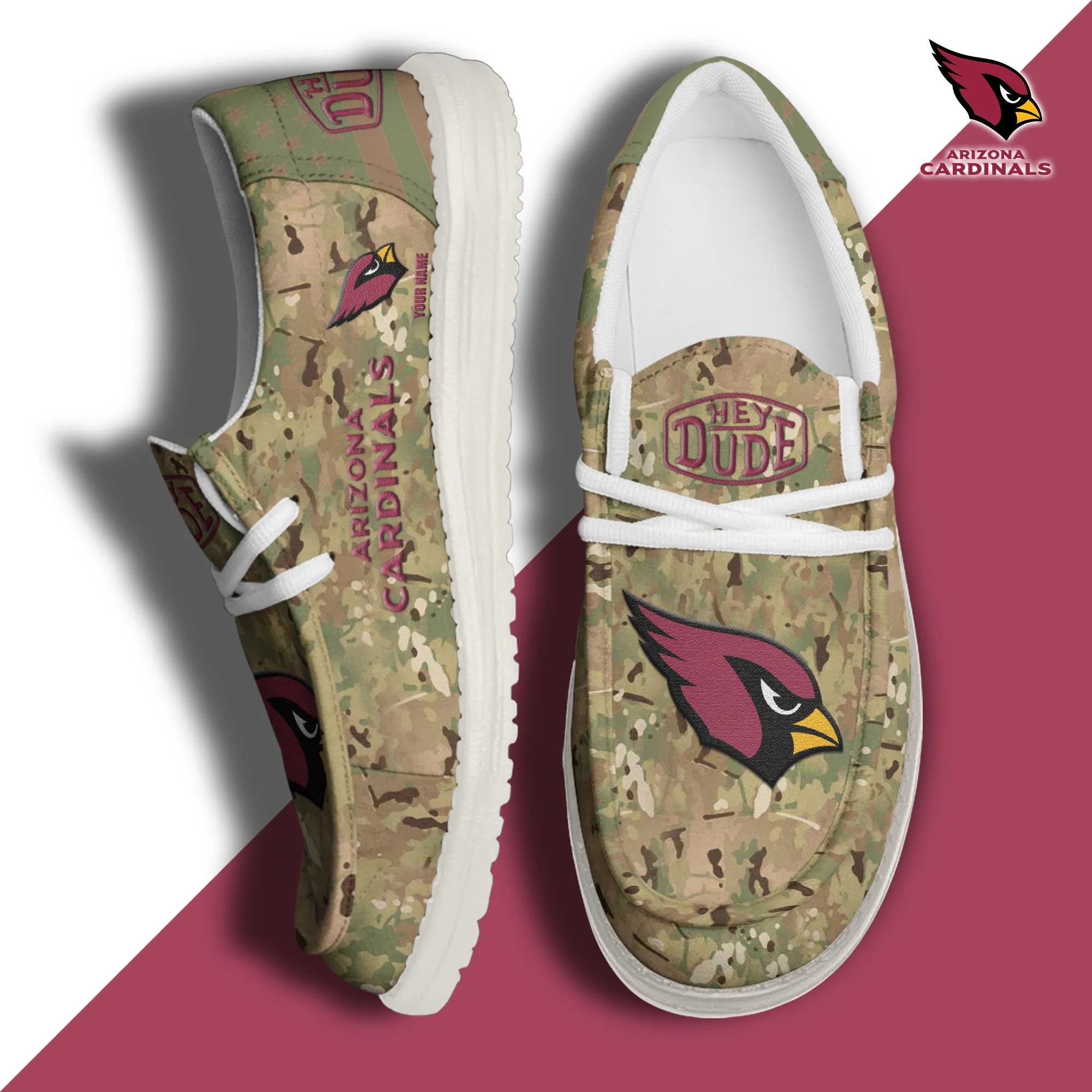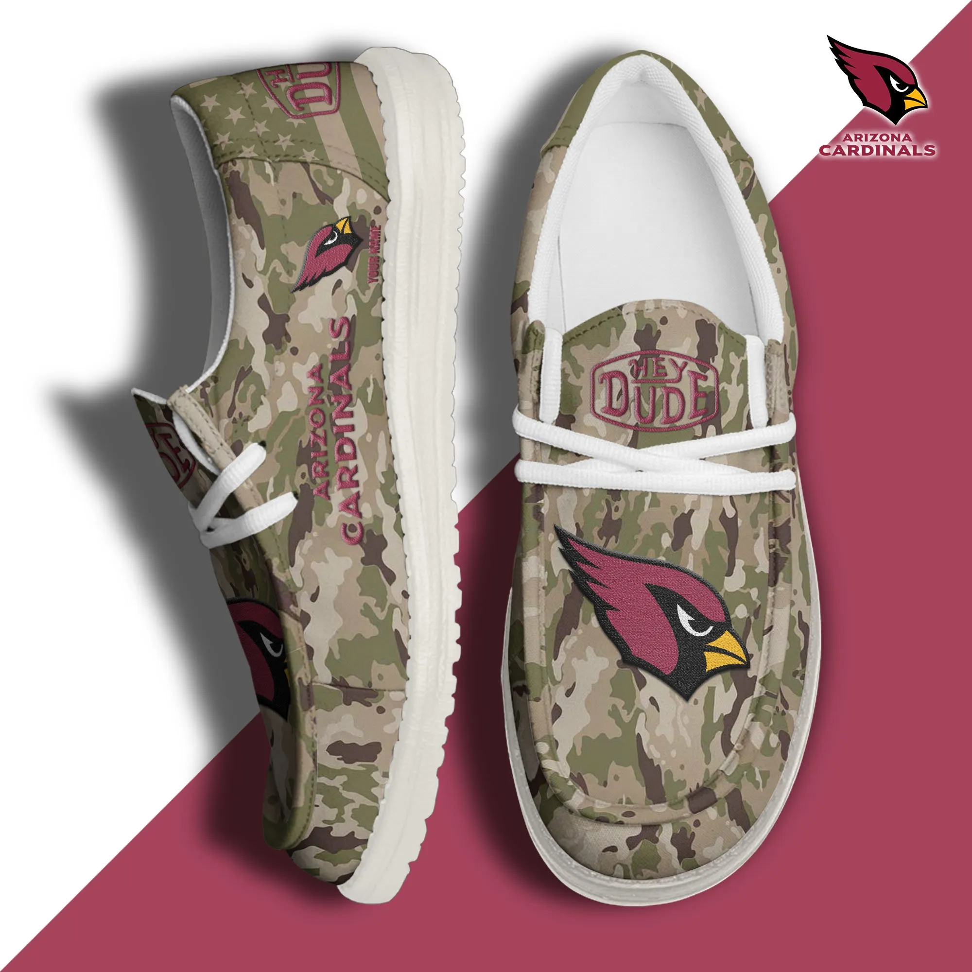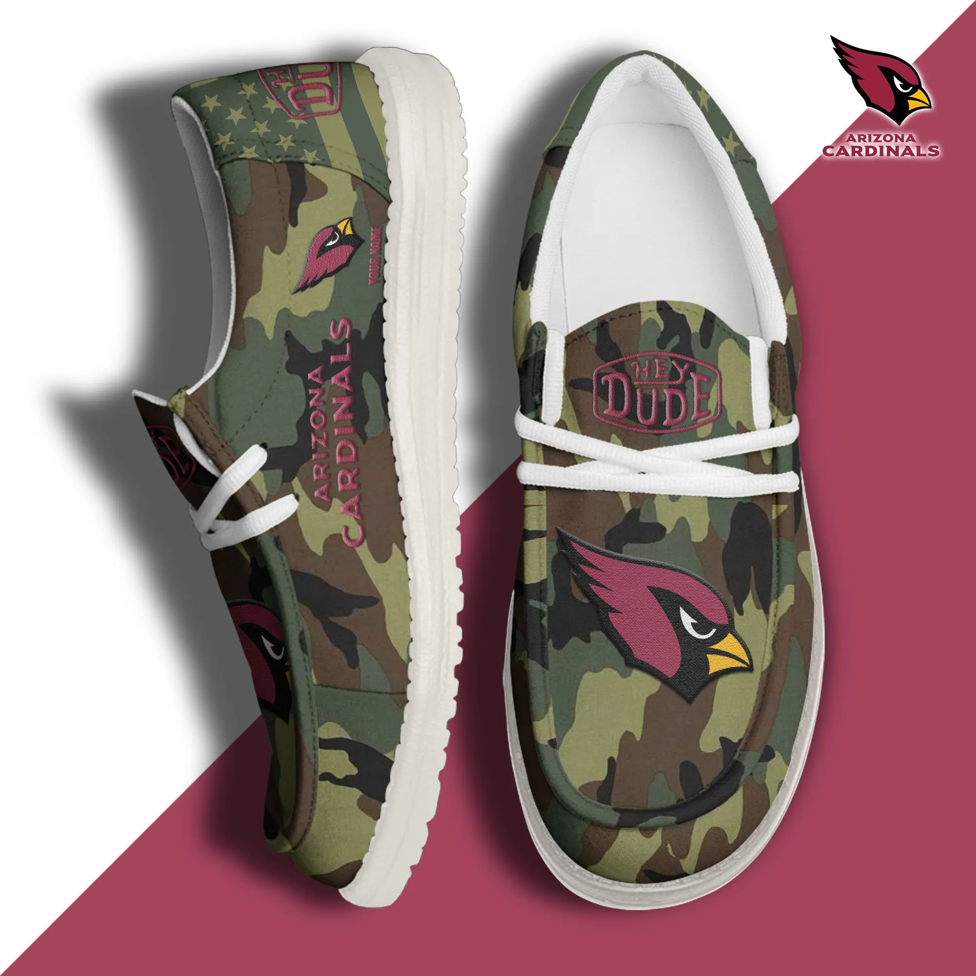 Arizona Cardinals 3D Print Dude Shoes Camo Green For Men Women