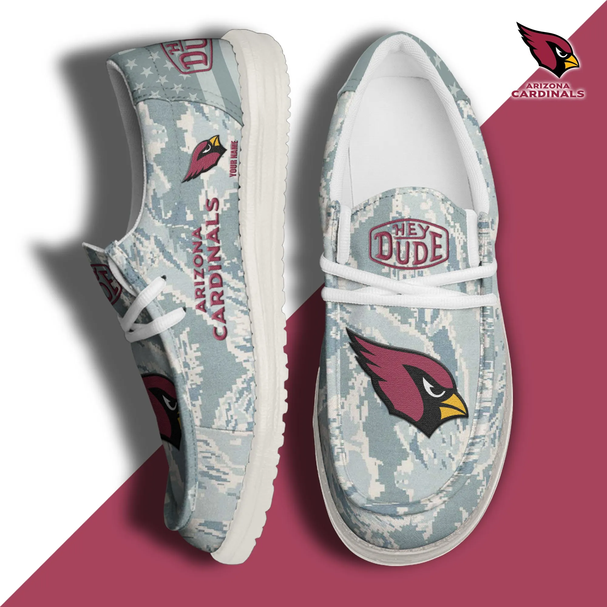 Arizona Cardinals 3D Print Dude Shoes Camo Grey Blue For Men Women