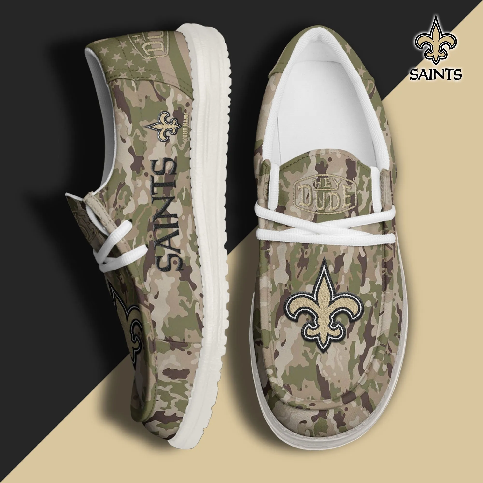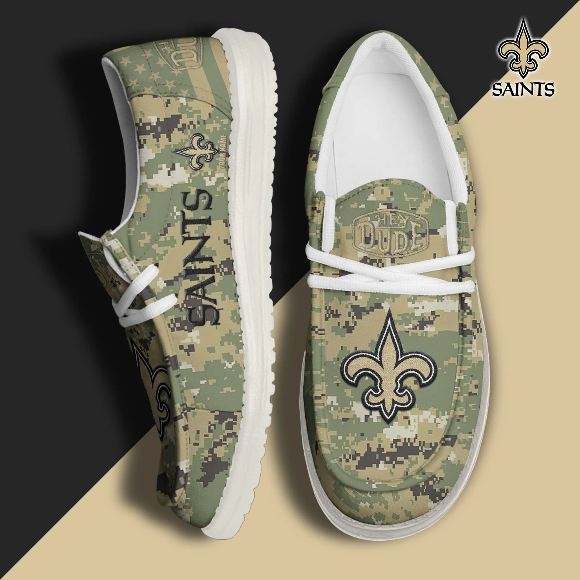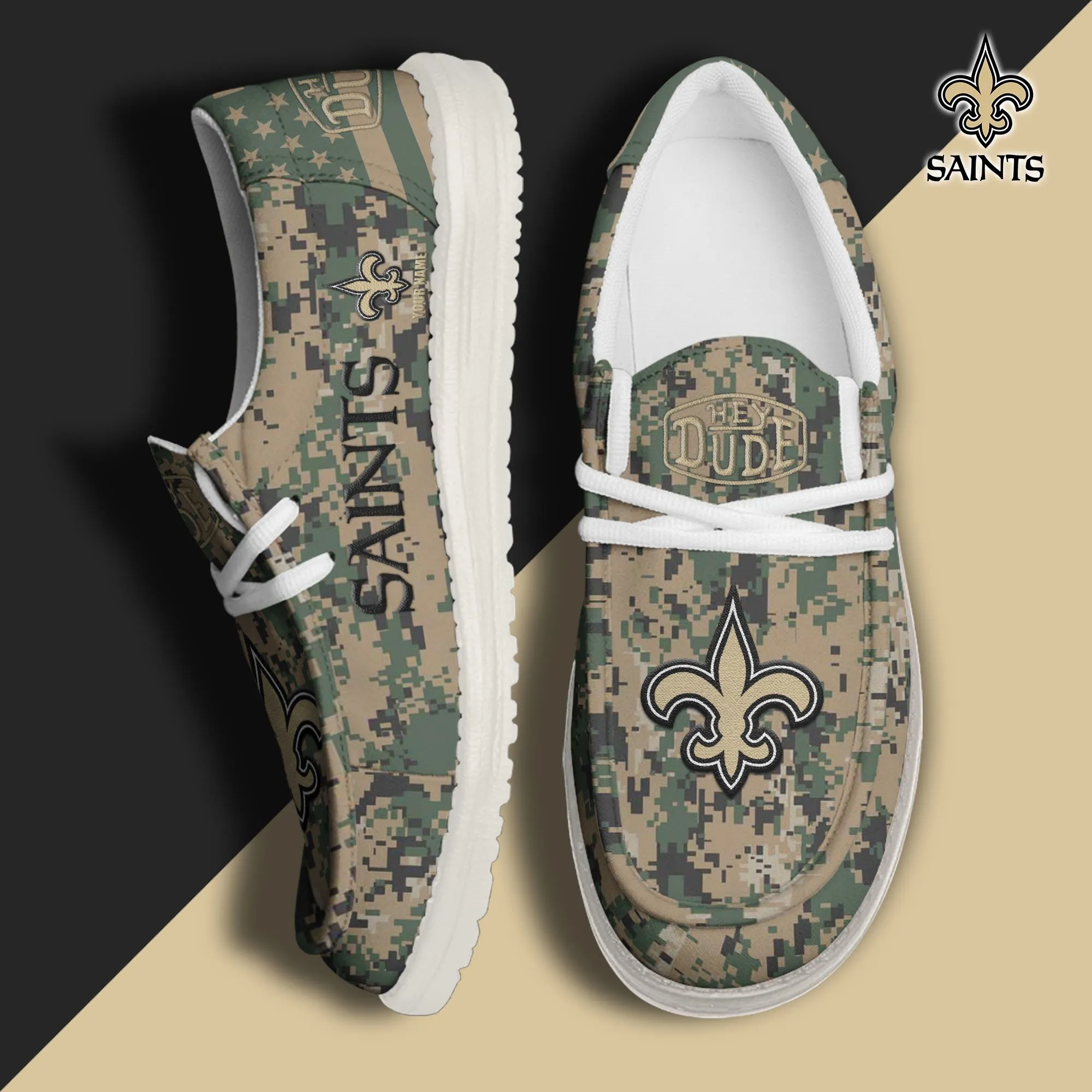 New Orleans Saints 3D Print Dude Shoes Camo Green For Men Women