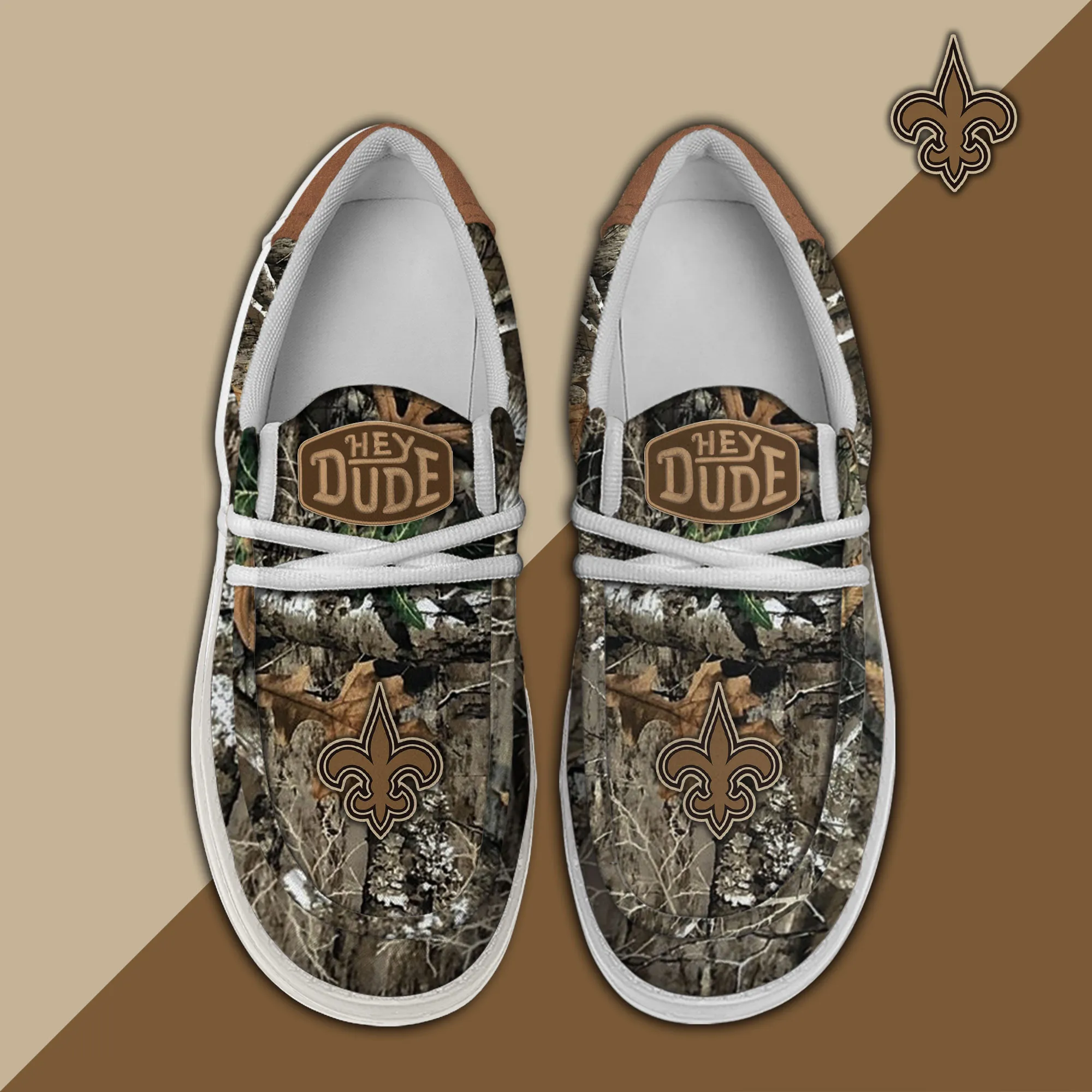 New Orleans Saints 3D Print Dude Shoes Khaki Color For Men Women