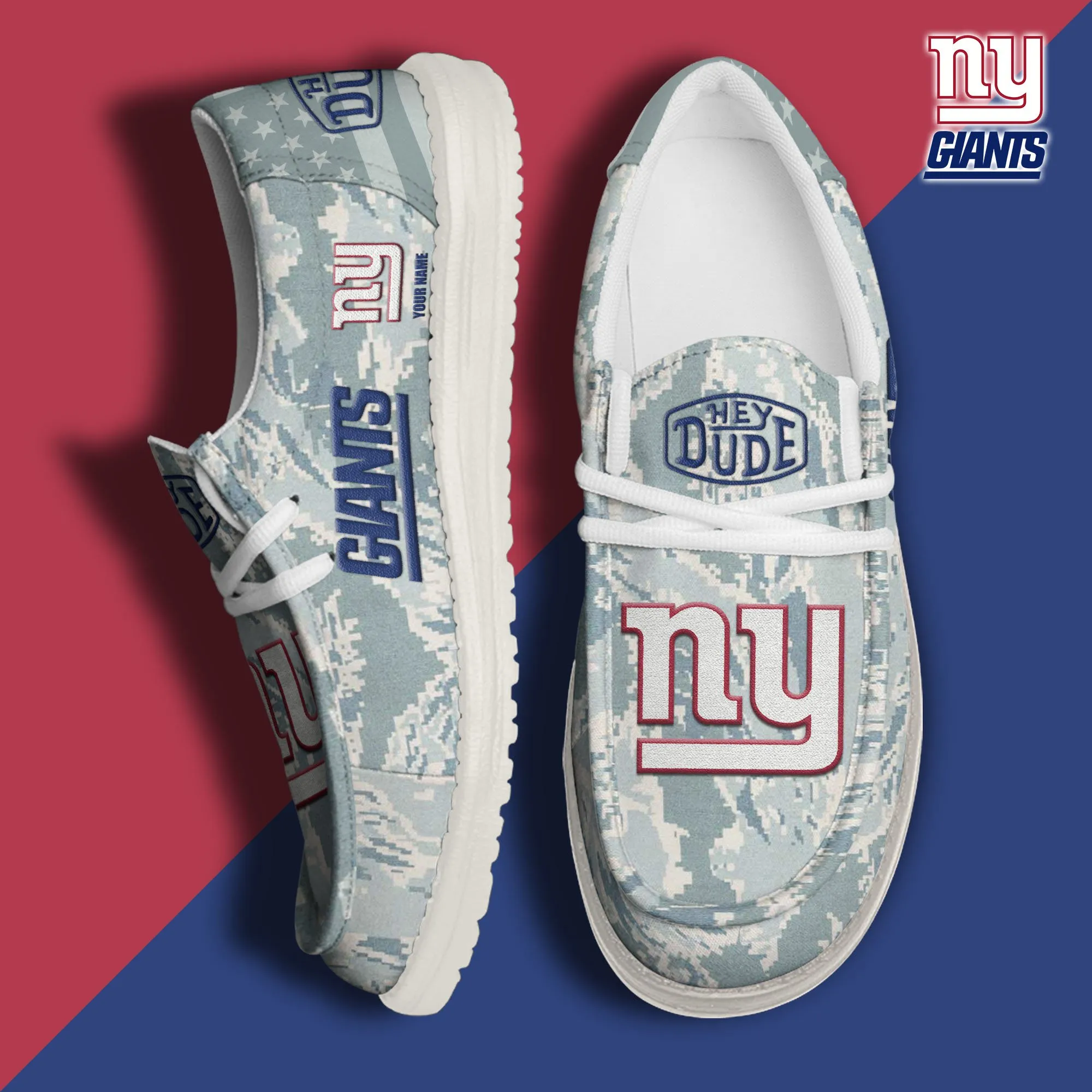 New York Giants 3D Print Dude Shoes Camo Blue Grey For Men Women